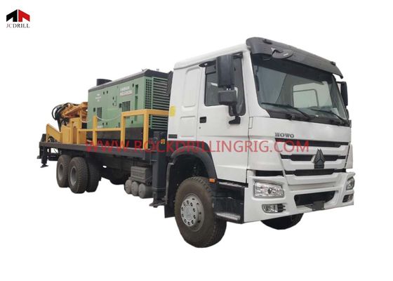 300m 6 X 4 SINOTRUK HOWO Heavy Duty Truck Water Well Drilling Rig With Air Compressor Inbuilt