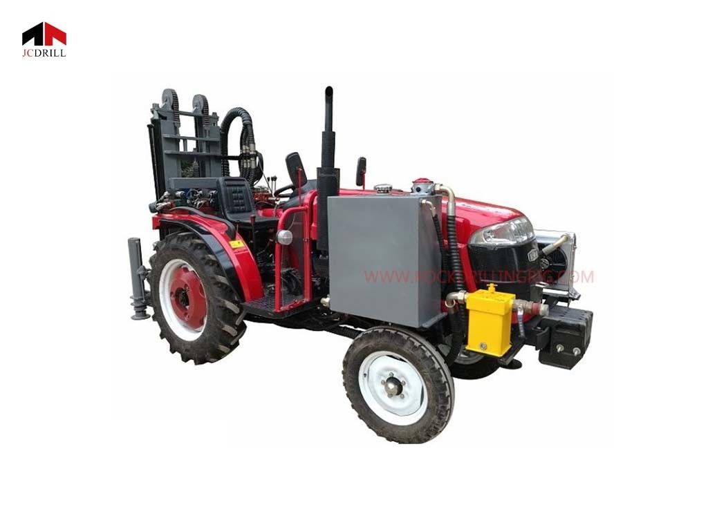 TD300 300m 4 X 4 tractor mounted water well drilling rig uses the tractor diesel engine as the working power of the rig. The rig working part is integrated with the tractor. The tractor is the rig, the transportation machine, and the working power of the rig. When going to the work site, the tractor has the transportation transfer capability. The air compressor can be mounted, which saves the investment of the transportation vehicle, lowers the cost and makes the work more convenient. It is also equipped with a tricycle to load the drill pipe. Because the fuselage is small and flexible, the tractor is more suitable for driving and operating in various road conditions and occasions in the wild, villages, etc. Rural hutongs and farmyards can enter the well.